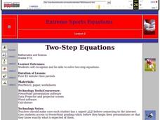 Young scholars explore the concept of solving two-step equations. In this solving two-step equations lesson, students watch a short video about solving equations. Young scholars view a PowerPoint presentation about solving two-step...