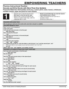 Practice sounding out multi-syllable words with this scaffolded lesson. Learners decode words by segmenting them into phonemes and combining the sounds. Your lines are in bold here, but you can easily use this simply as an outline...