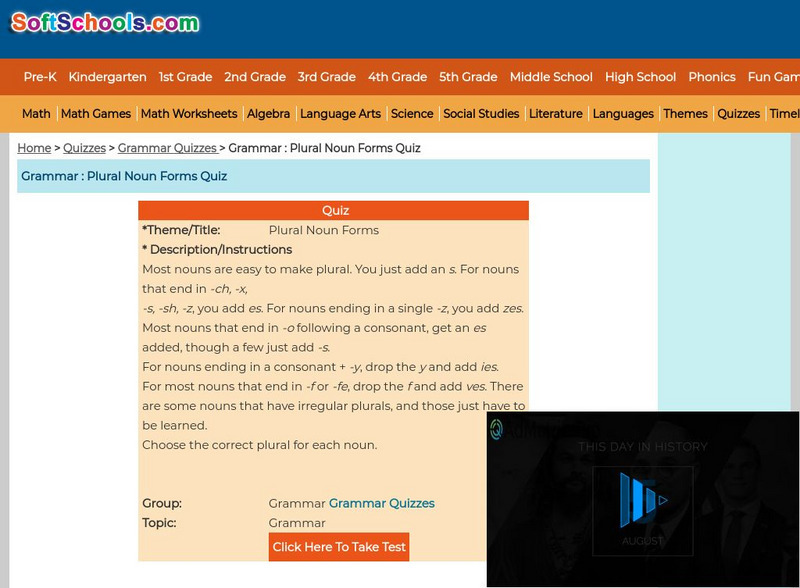 Soft Schools: Grammar: Plural Noun Forms Quiz