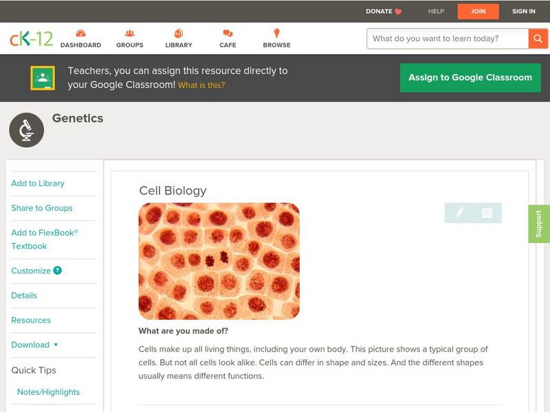 [Free Registration/Login may be required to access all resource tools.] A cell is the smallest structural and functional unit of an organism. Learn more about cell biology in this learning module produced by CK-12.