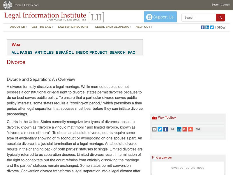 This page provides an easy-to-understand explanation of the legal types of divorce; also provides links to state statutes & recent federal decisions.