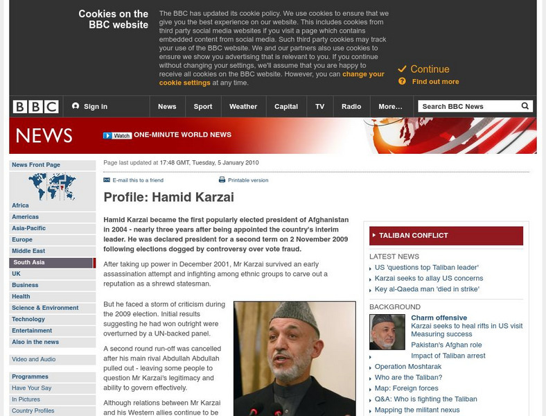 A profile of Hamid Karzai, Afghanistan's elected president after the fall of the Taliban. Background details of his life and political career are shared. (January 5, 2010)