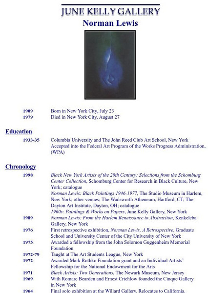 This resource offers a timeline format of the education and career of Norman Lewis.