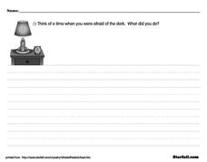 For this writing worksheet, students read a story starter which asks them to recall a time they were afraid of the dark. Students write the story telling of their experience.