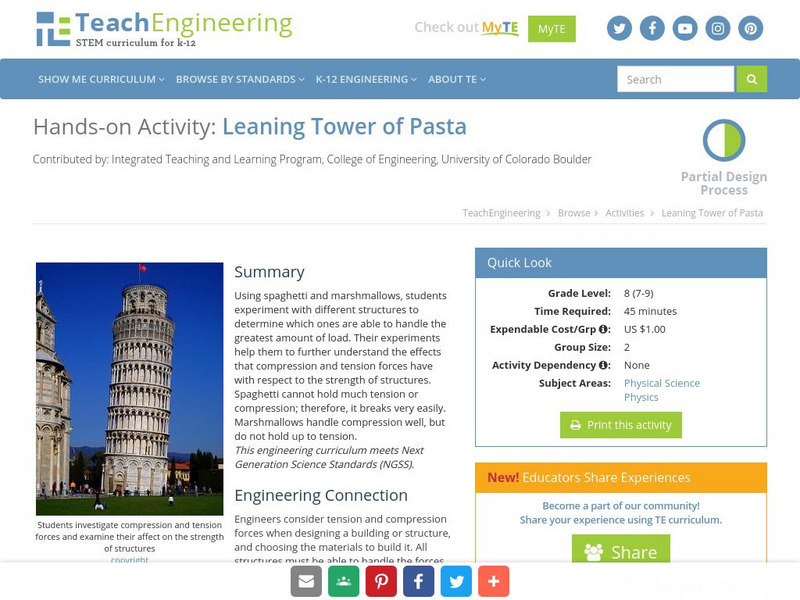 Teach Engineering: Leaning Tower of Pasta