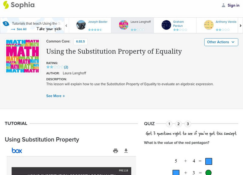 Sophia: Using the Substitution Property of Equality: Lesson 2