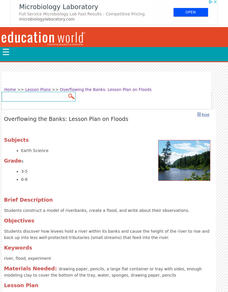 Learners discover how levees hold a river within its banks and cause height of river to rise & back up into less well-protected tributaries that feed into the river, by constructing model of riverbanks, creating a flood, &...