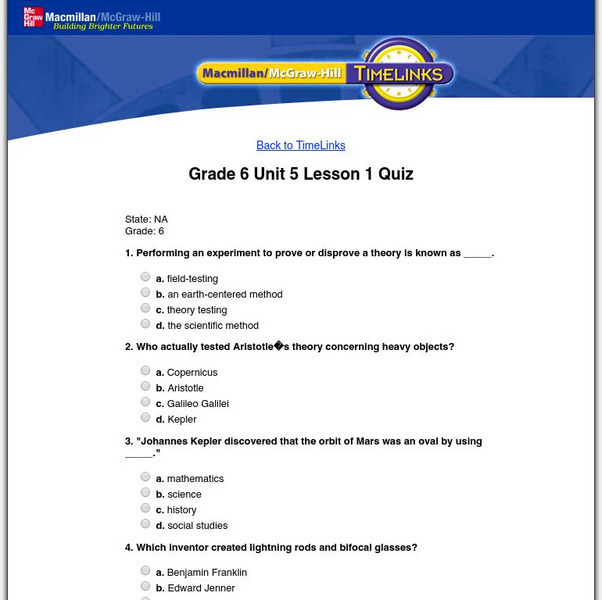 Macmillan/mc Graw Hill: The World, Vol. 1: Changing Ideas: Lesson 1 Quiz