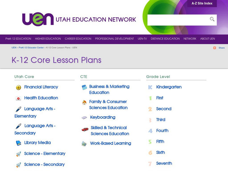 The Utah Education Network provides a variety of lesson plans specifically targeting the Utah educator. Content is organized by subject area and grade level.