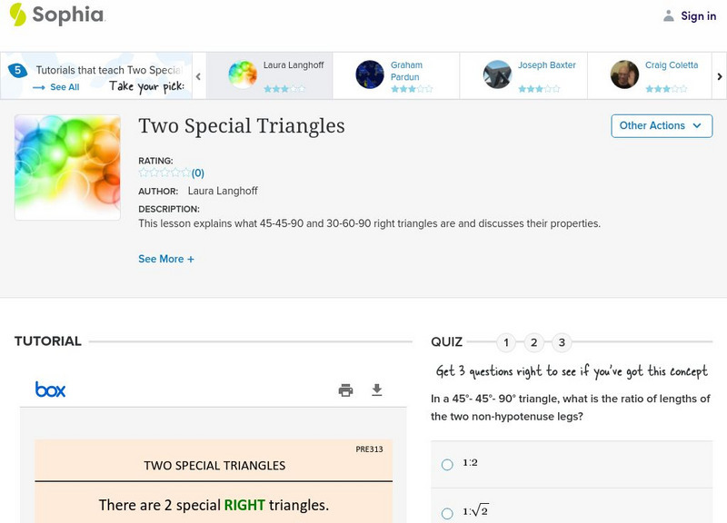 [Free Registration/Login may be required to access all resource tools.] Recognize special right triangles and their properties.