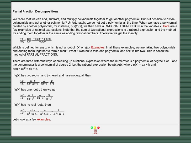 The Math Forum: Ask Dr. Math: Partial Fractions