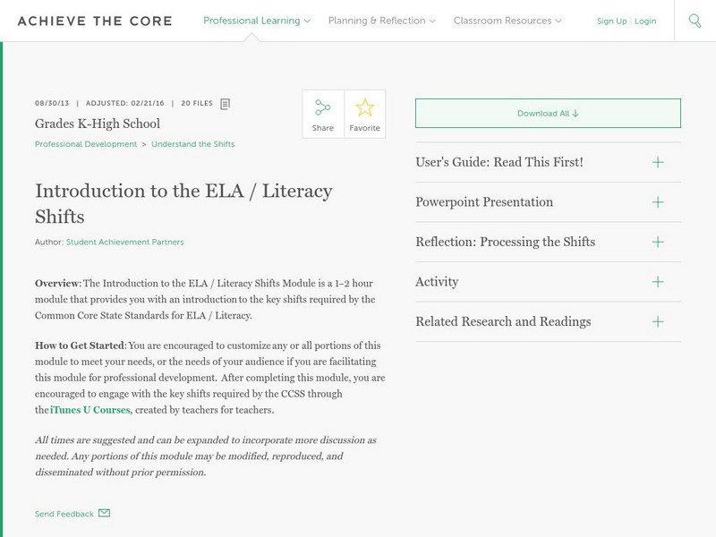 Achieve the Core: Introduction to Ela / Literacy Shifts