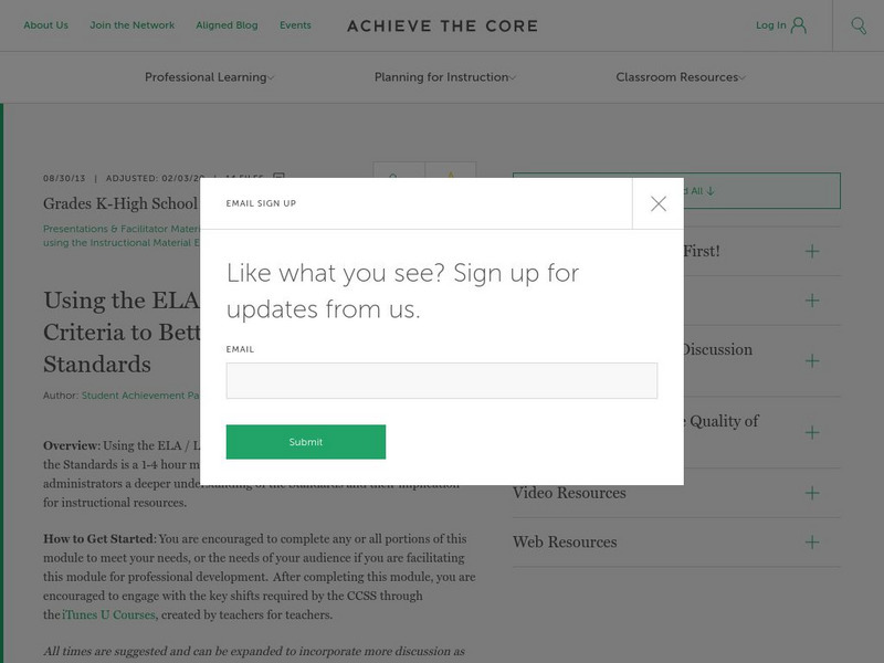 Achieve the Core: Using the Ela / Literacy Publishers' Criteria