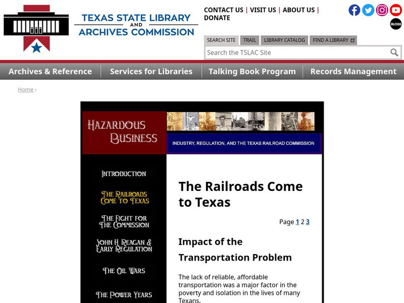 Texas State Library and Archives Commission: Hazardous Business: The Railroads Come to Texas