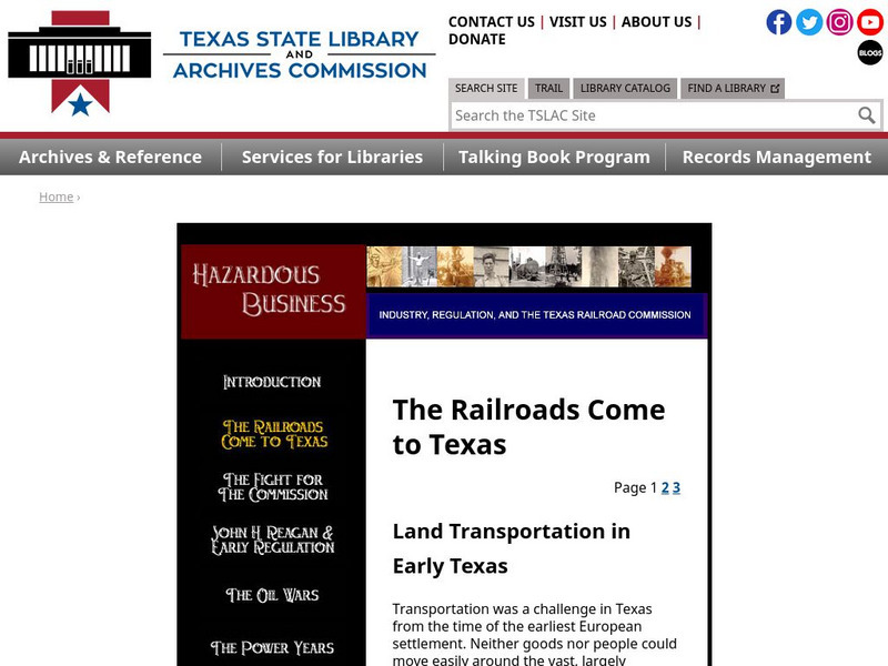 Texas State Library and Archives Commission: The Railroads Come to Texas: Land/water Transportation in Early Texas