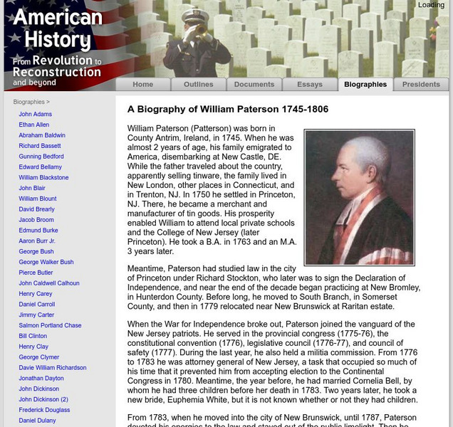 This resource features a detailed biography on the politician from New Jersey who advocated for states' rights.