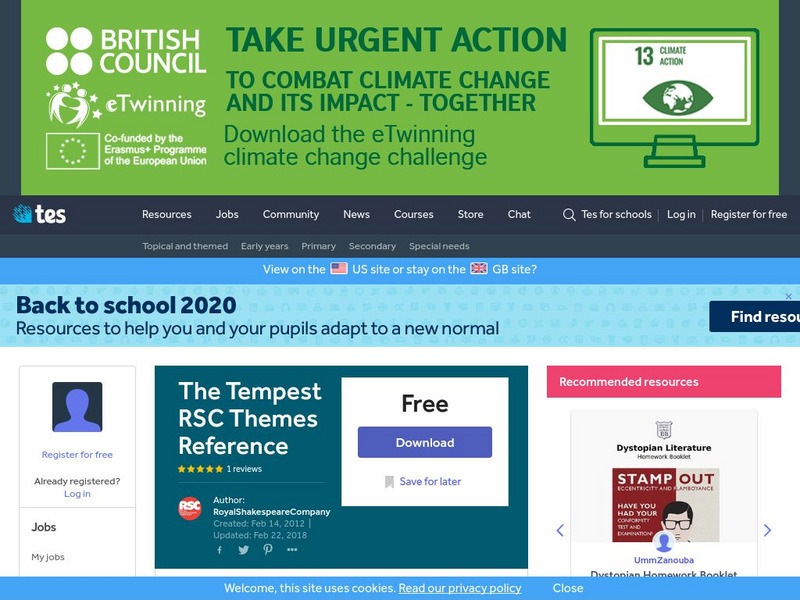 [Free Registration/Login Required] This is a teacher reference guide for the themes and motifs in Shakespeare's The Tempest. It lists the major themes and motifs and provides examples with text references.