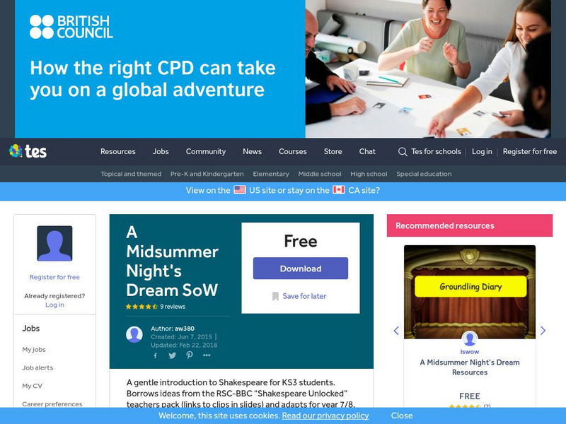 [Free Registration/Login Required] This is a teacher guide with various lessons, worksheets, and activities to teach Shakespeare's A Midsummer Night's Dream.