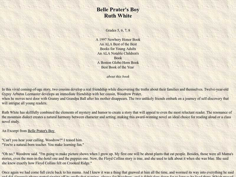 This is a teacher's guide to the novel Belle Prather's Boy which includes teaching ideas and related themes. In this vivid coming-of-age story, two cousins develop a real friendship while discovering the truths about their families and...