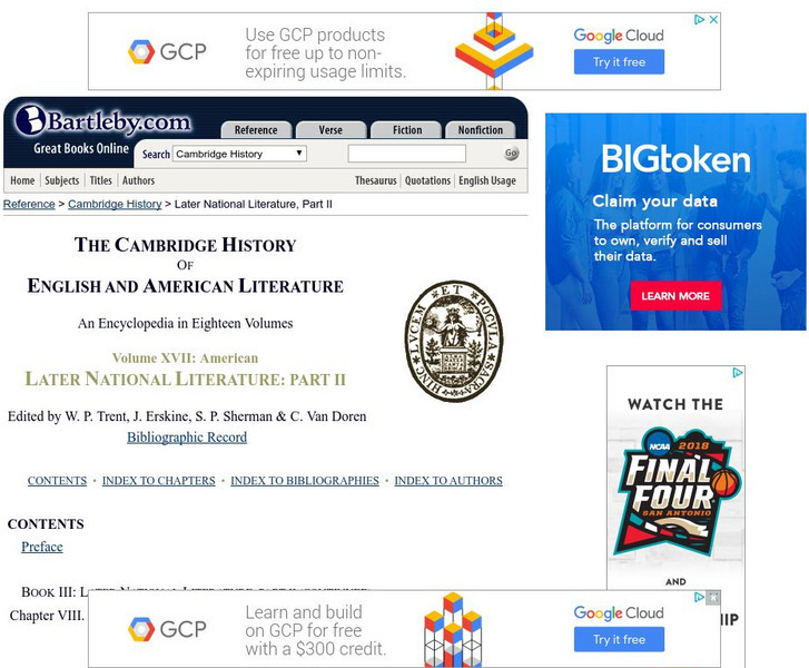 Site is from "The Cambridge History of English and American Literature, 1907-21." Covers Mark Twain himself and critiques on his work.