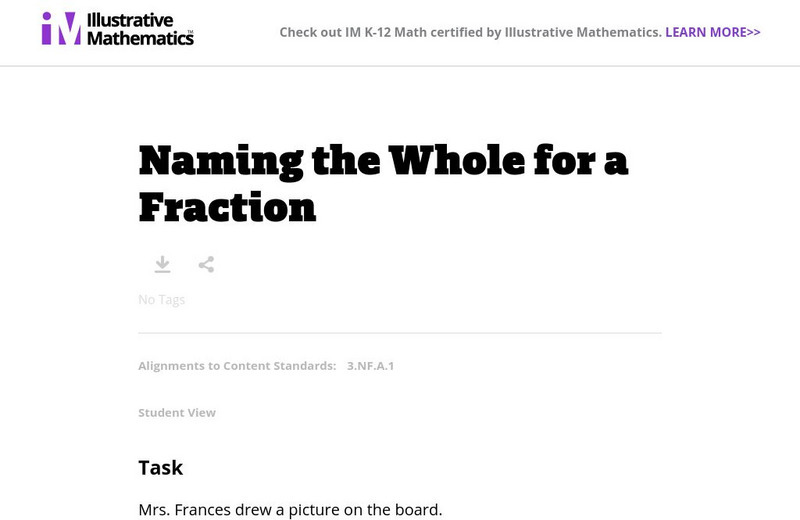 Illustrative Mathematics: 3.nf Naming the Whole for a Fraction