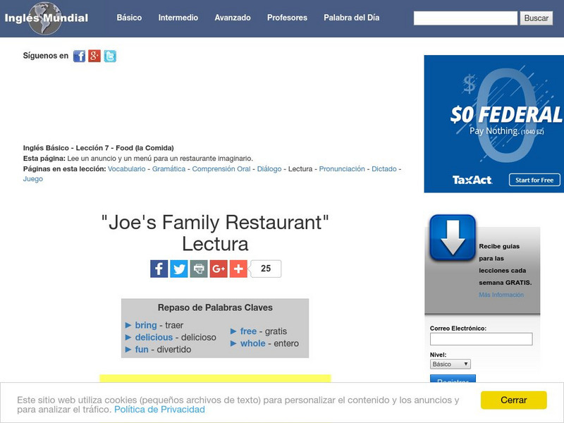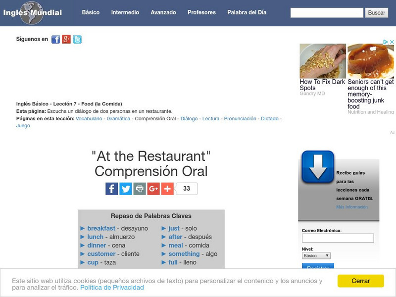 Ingles Mundial: Food (La Comida): Listening/dialogs
