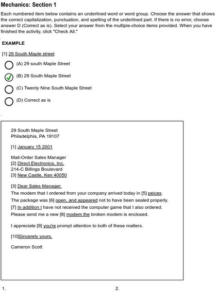 Holt, Rinehart and Winston: Second Course Grammar Quiz 1