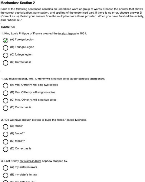 Holt, Rinehart and Winston: Section One Grammar Quiz 2