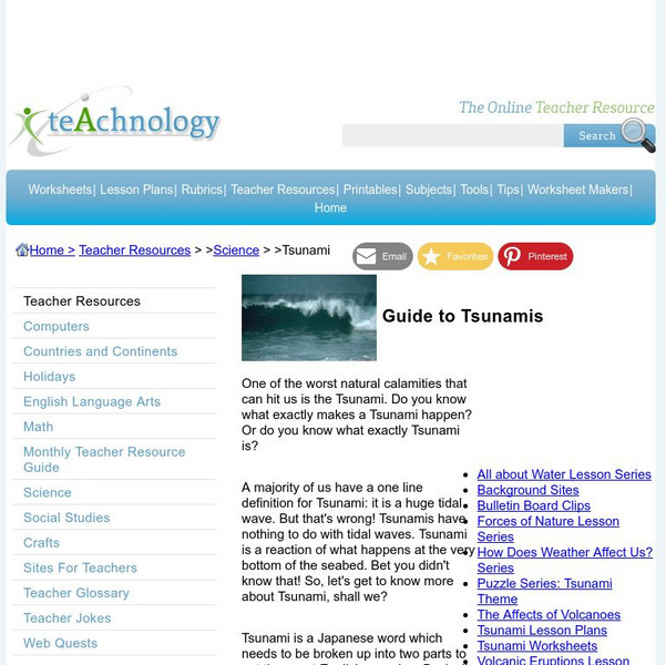 For any educator preparing a teaching theme/unit on tsunamis, this is the site for you! Links to a myriad of lesson plans, worksheets, interactive sites, teacher resources, and much more are all found on this one site.