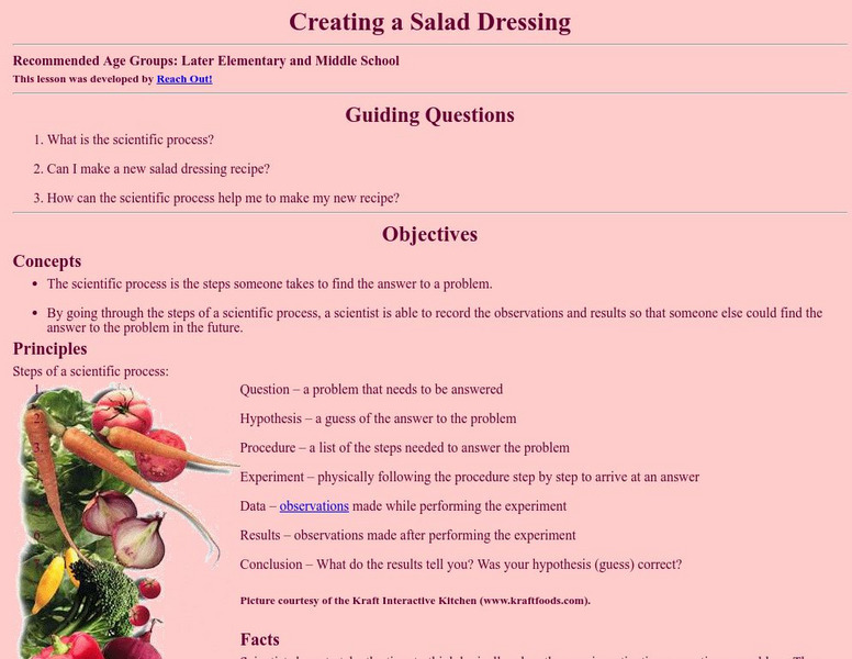 This site is provided for by Michigan Reach Out! Teach the scientific method with salad dressing! Students understand the scientific process and how it helps scientists by making salad dressing.