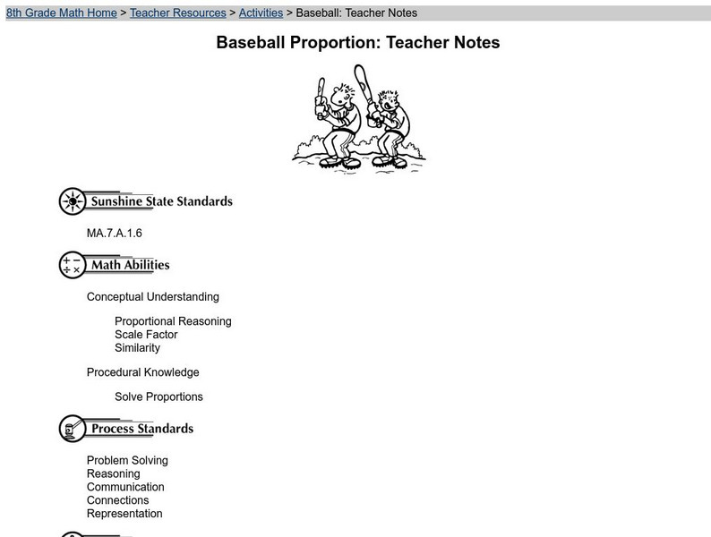 Fcat: Baseball Proportion: Teacher Notes