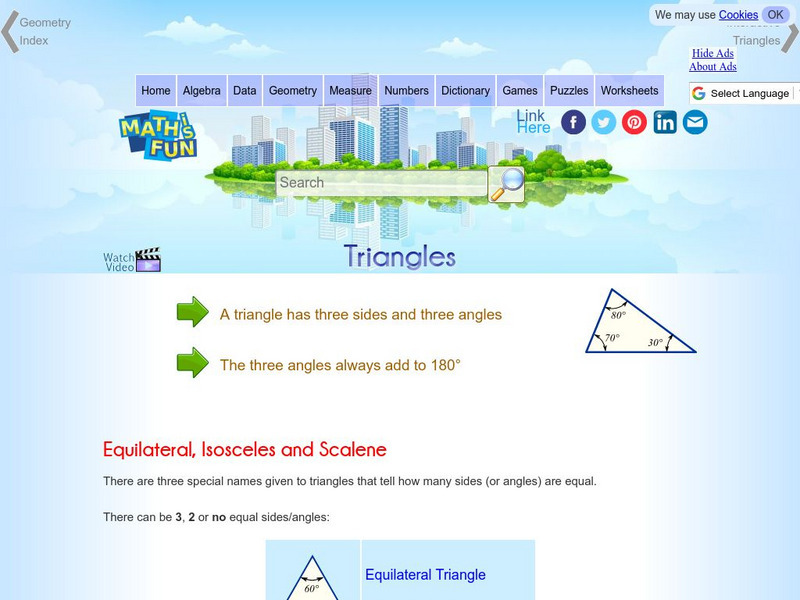 The geometry resource explores triangles. Descriptions, examples, and practice exercises are included.
