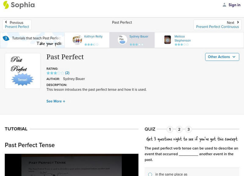 A video lesson explaining the past perfect verb tense, how it is formed, and how it can be utilized within a sentence. [4:06]