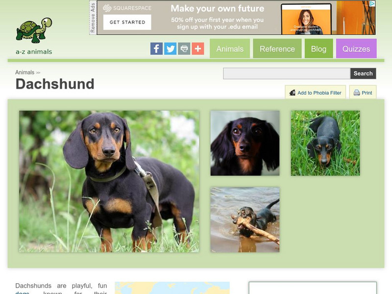 Illustrated encyclopedia entry offers statistical facts on Dachshunds with details about their temperament and personalities.