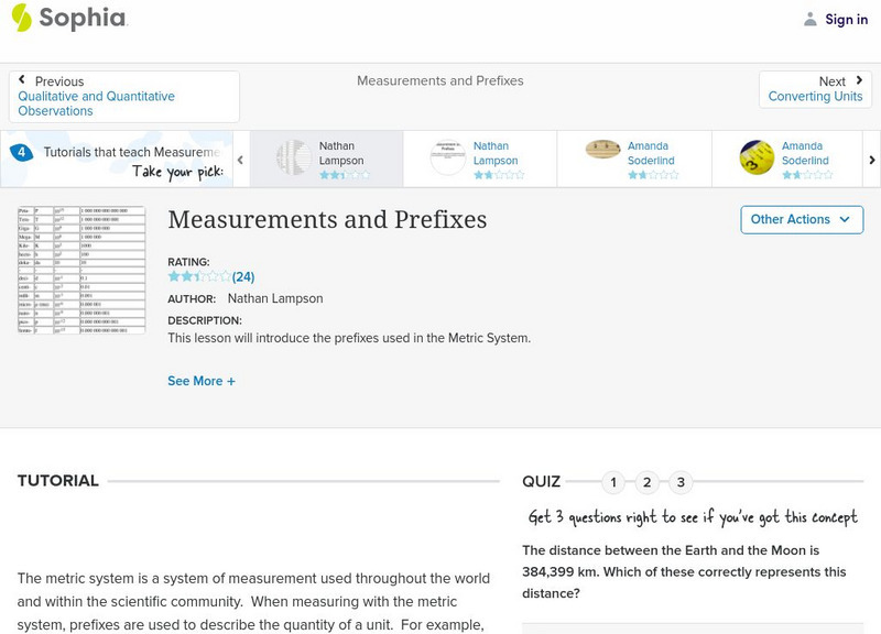 Sophia: Measurements and Prefixes: Lesson 3