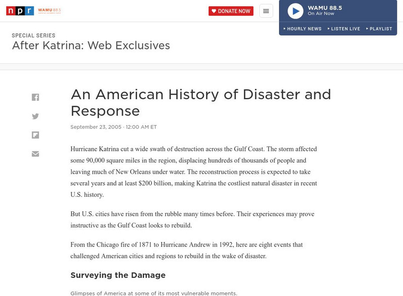 In the wake of Hurricane Katrina, NPR discusses past natural disasters in U.S. history, the challenges and the rebuilding. From the Great Chicago Fire in 1871 to Hurricane Andrew in 1992, read about the events that changed peoples lives.