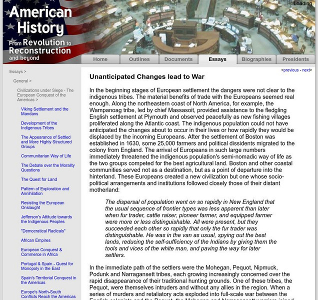 American History: Essays: Unanticipated Changes Lead to War