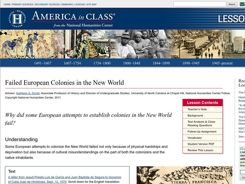 National Humanities Center: America in Class: Failed European Colonies in the New World