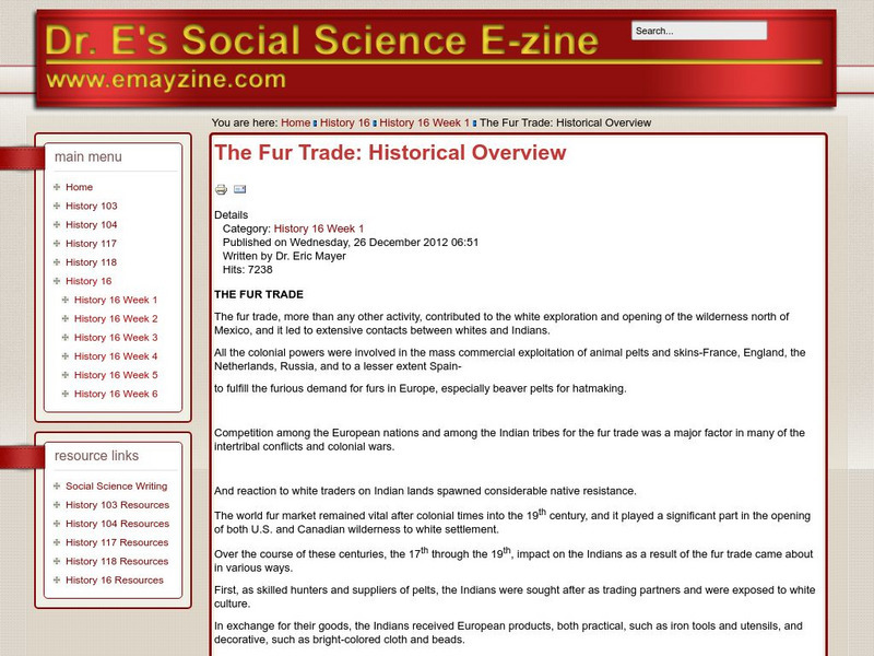 The Fur Trade: Its Impact on Native America