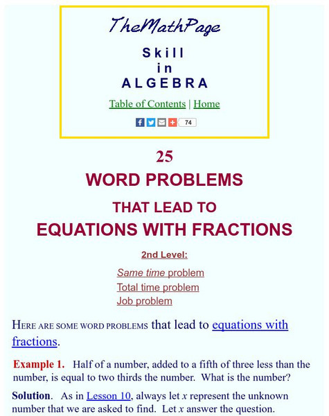 The Math Page: Skill in Algebra: Word Problems Equations With Fractions