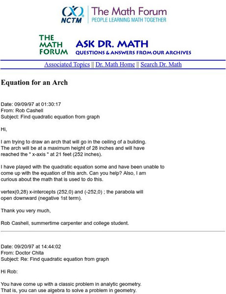 The Math Forum: Ask Dr. Math: Equation for an Arch