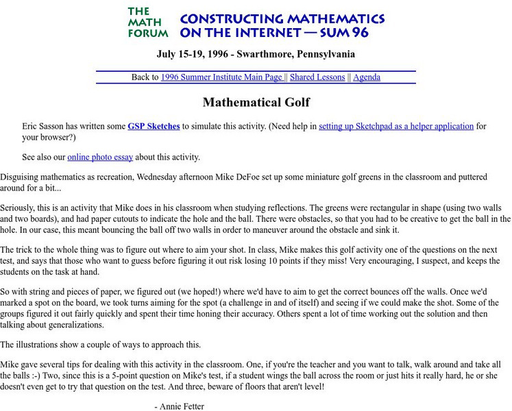 The Math Forum: Putt Putt Golf in the Math Classroom