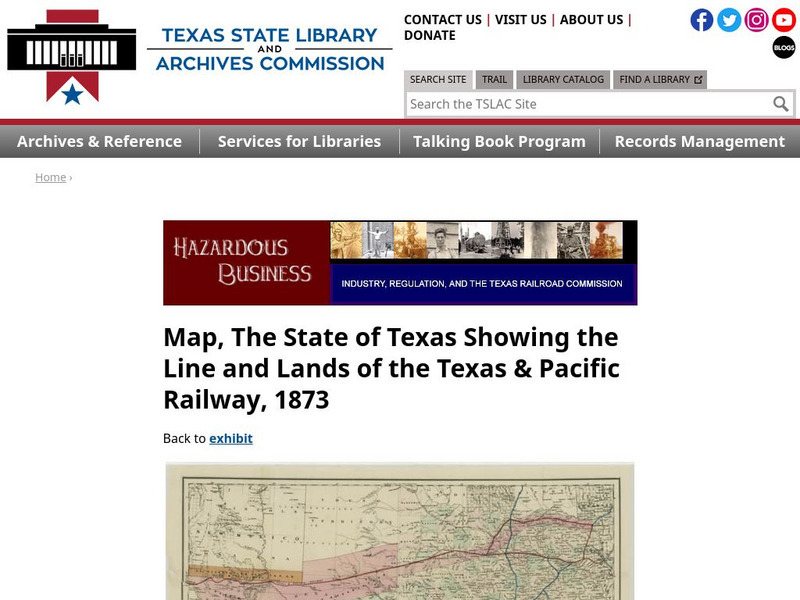 Texas State Library and Archives Commission: Hazardous Business: Line and Lands of the Texas & Pacific Railway, 1873