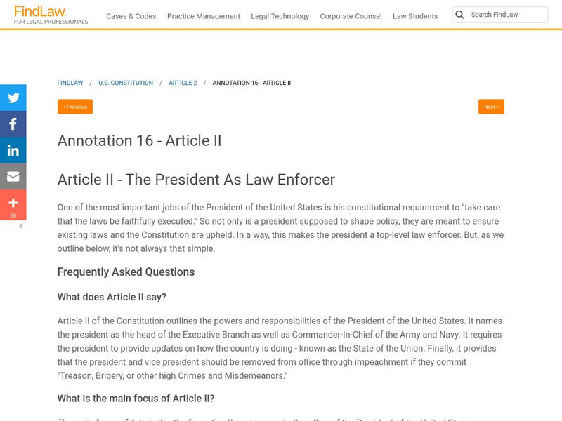 Find Law: Article Ii: The President as a Law Enforcer