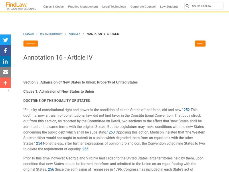Find Law: Article Iv: Doctrine of the Equality of States