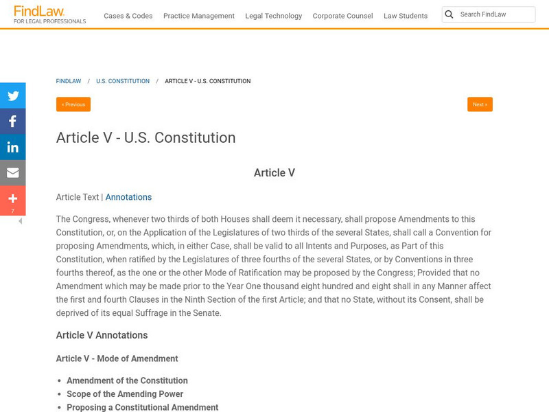 Find Law: u.s. Constitution: Article V
