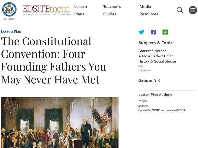The lesson plan provides varies information and links to help teach about the Constitutional Convention and learn about the Founding Fathers.