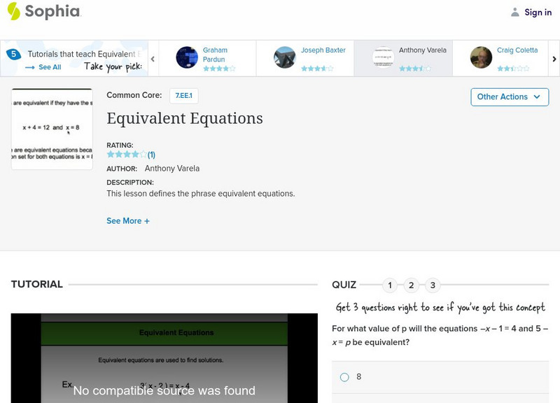 This lesson defines the phrase equivalent equations. It is 1 of 5 in the series titled "Equivalent Equations."