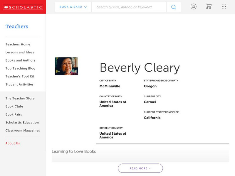 Biography on children's author Beverly Cleary along with a listing of her awards that she has won throughout the years.