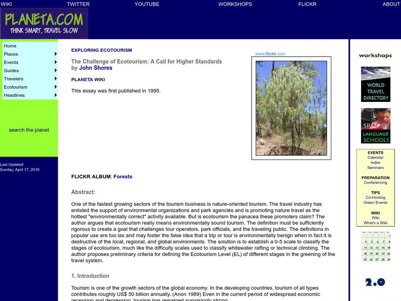 Planeta: Challenge of Ecotourism: A Call for Higher Standards